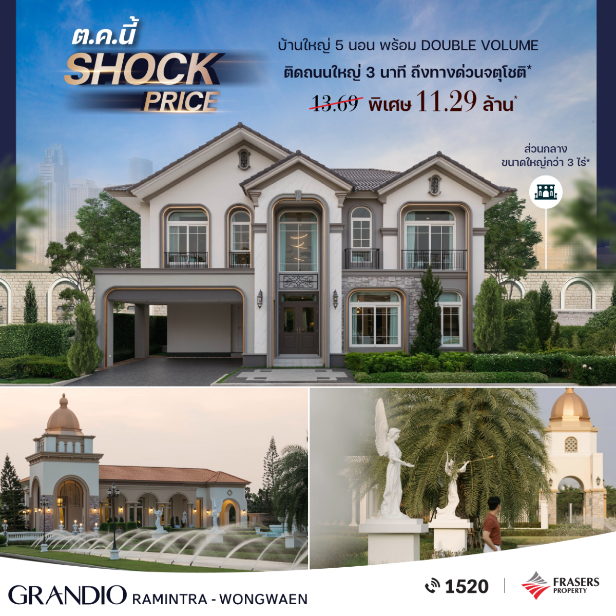 บ้านเดี่ยว พื้นที่ใช้สอย 240 ตร.ม. 4 ห้องนอน 4 ห้องน้ำ 2 Living Room, Family Area, Multipurpose room, Dining room, Kitchen, Laundry, ห้องพระ ที่จอดรถ 3 คัน