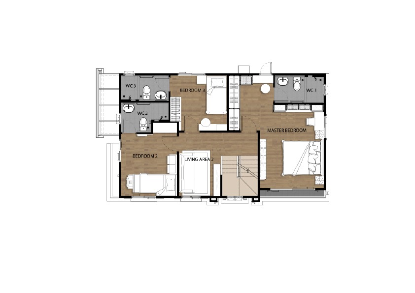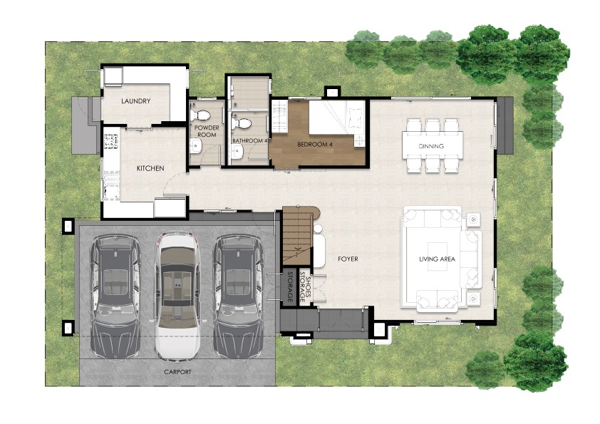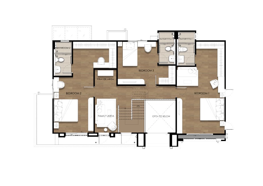 Single Detached House Total usable area: 258 sq.m. 4 bedrooms, 5 bathrooms Family living room, prayer room, dining room, kitchen, Glass House, maid’s room, and parking for 3 cars.