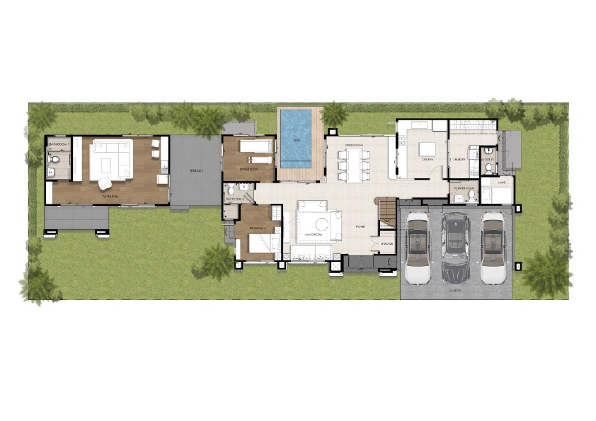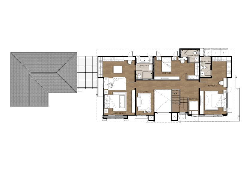 Single Detached House Total usable area: 258 sq.m. 4 bedrooms, 5 bathrooms Family living room, prayer room, dining room, kitchen, Glass House, maid’s room, and parking for 3 cars.
