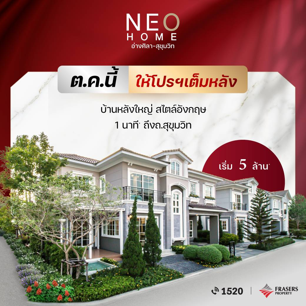 Neo Homes Utilization area of 181 sq. mts. 4 bedrooms, 4 bathrooms An upstairs living room, a prayer room, a dining room, a Thai kitchen, and parking space for 2 cars