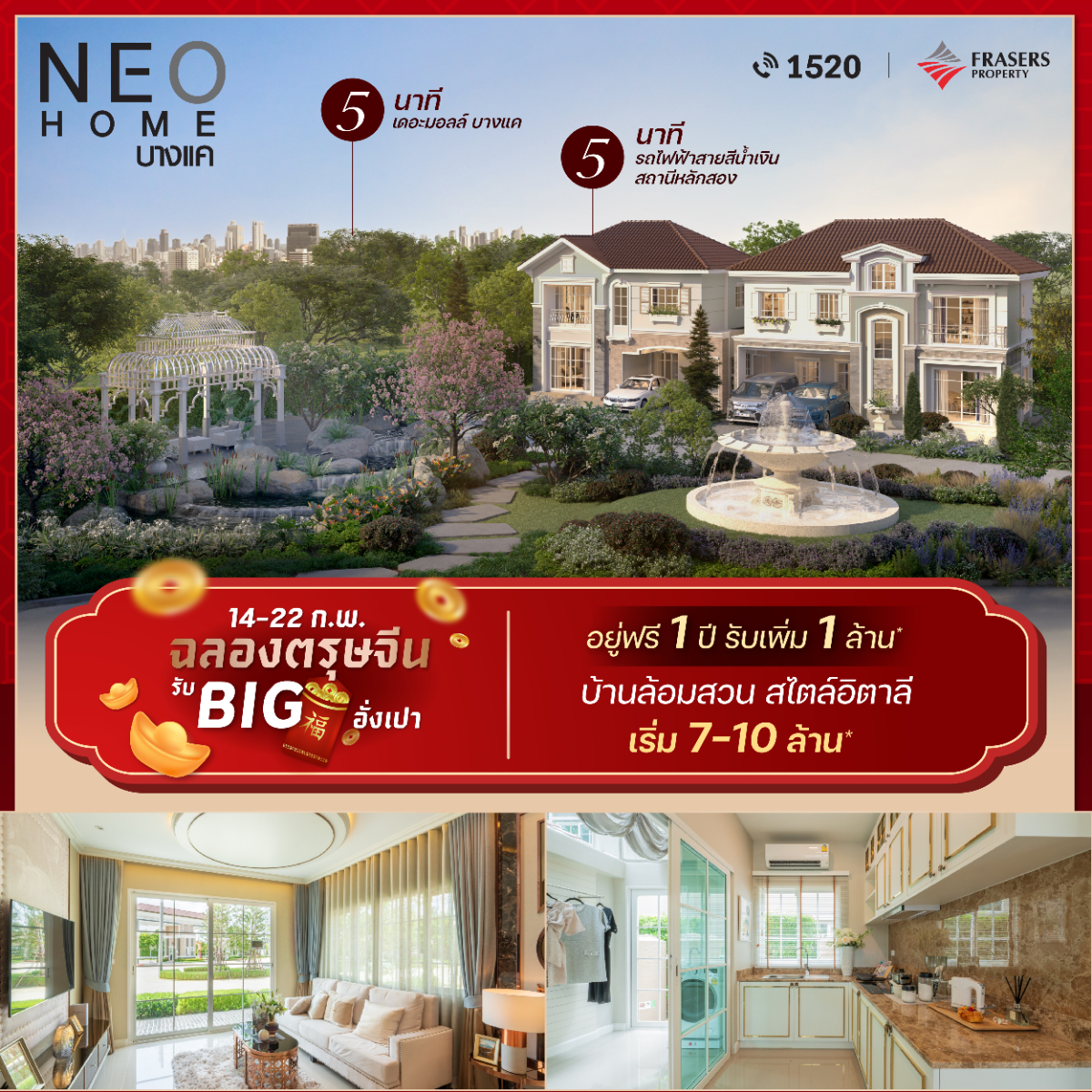 Neo Homes Utilization area of 140 sq. mts. 4 bedrooms, 3 bathrooms An upstairs living room, a prayer room, a dining room, a Thai kitchen, and parking space for 2 cars