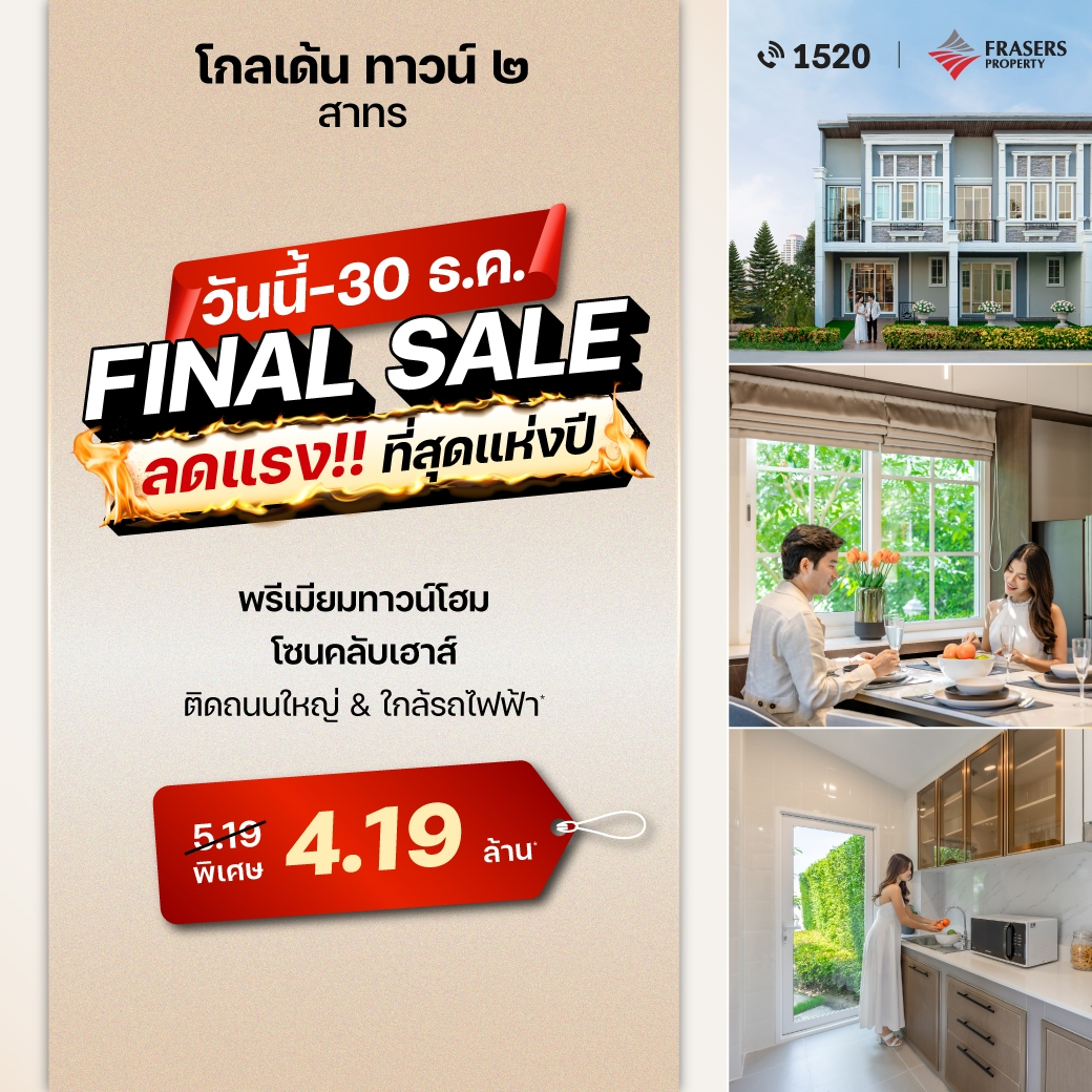 utilization area of 117 sq. meters, 4 bedrooms with 3 bathrooms, a living room, a dining room, a Buddhist prayer room, a Thai style kitchen and parking space for two cars.