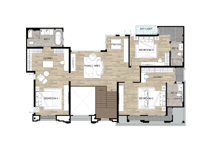 บ้านเดี่ยว พื้นที่ใช้สอย 616 ตร.ม. 5 ห้องนอน 6 ห้องน้ำ 3 จอดรถ ส่วนรับแขก ส่วนพักผ่อน Family Area ห้องรับประทานอาหาร ครัวไทย ห้องแม่บ้าน Maid Plaza พร้อมส่วน Service
