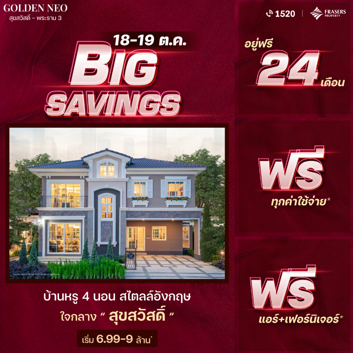 บ้านนีโอ โฮม พื้นที่ใช้สอยรวม 155 ตร.ม. 4 ห้องนอน 3 ห้องน้ำ ฟังก์ชั่นพิเศษ Family area ห้องรับประทานอาหาร, ครัวไทย และที่จอดรถ 2 คัน