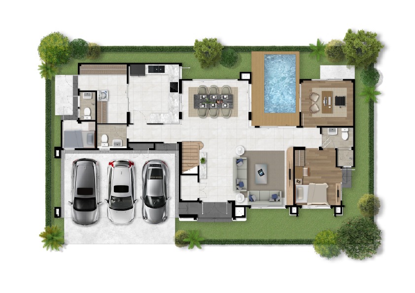 ♦ CLASS OF FUNCTION ♦ การออกแบบที่จัดสรรฟังก์ชั่นได้เหมาะสมลงตัวห้องนอนพร้อมห้องน้ำในตัวทุกห้อง Family area ขนาดใหญ่ พิเศษด้วยห้องซักรีด ห้องอเนกประสงค์ชั้นล่าง ที่สามารถปรับเปลี่ยนเป็นห้องออกกำลังกายได้ มาพร้อมกับสระว่ายน้ำส่วนตัว*
