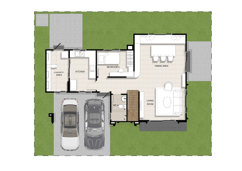 พื้นที่ใช้สอย 216 ตร.ม. 4 ห้องนอน 4 ห้องน้ำ ห้องรับแขก, ห้องรับประทานอาหาร ฟังก์ชันพิเศษ ห้องพระ และที่จอดรถ 2 คัน