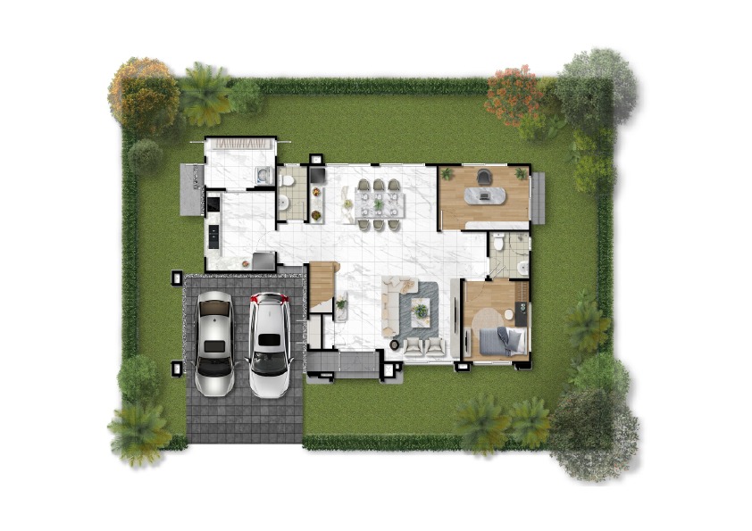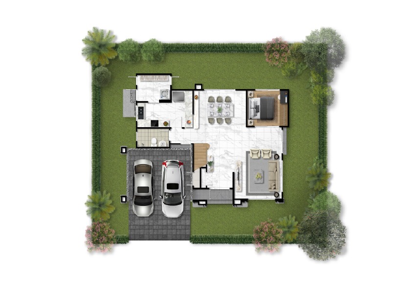 พื้นที่ใช้สอย 251 ตร.ม. 5 ห้องนอน 5 ห้องน้ำ ห้องรับแขก, ห้องรับประทานอาหาร และที่จอดรถ 2 คัน มาพร้อมฟังก์ชั่นพิเศษทั้งระบบอากาศ Frasers Clean and Cool Air และ EV Charger ที่โรงจอดรถ