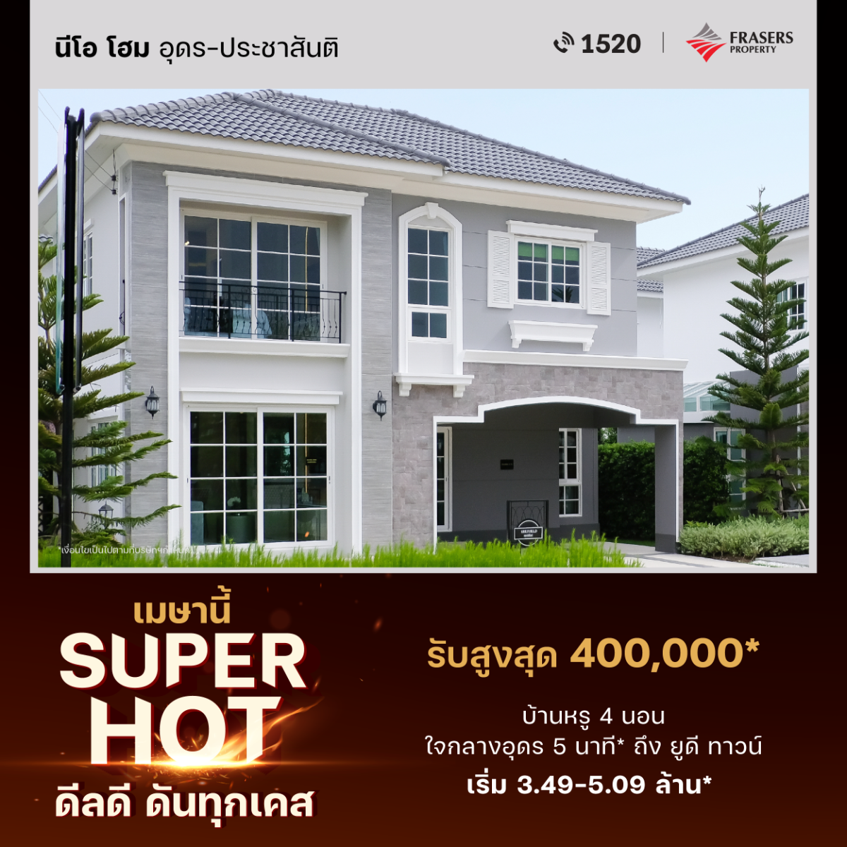ต้องที่นี่ 🏠 นีโอ โฮม อุดร-ประชาสันติ 👉 เริ่ม 3.49 - 5.09 ล้าน*