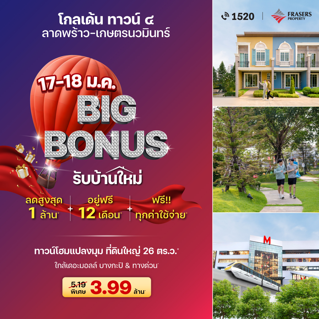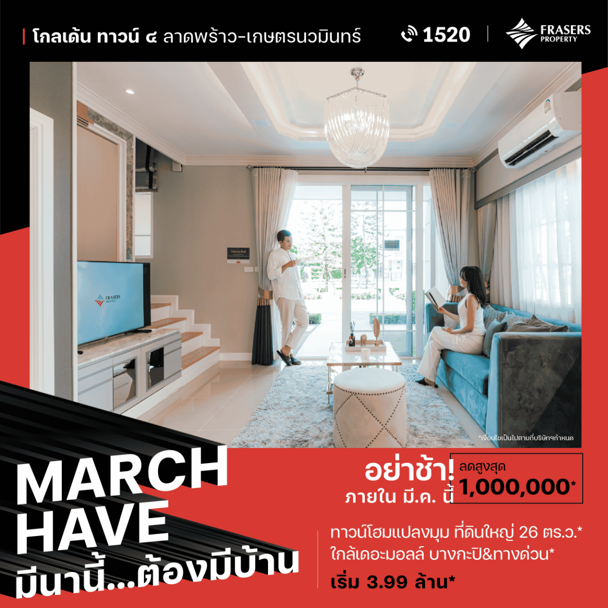 EXTRA FUNCTION เหนือกว่าทาวน์โฮมทั่วไป ให้มากถึง 4 ห้องนอน 3 ห้องน้ำ ห้องนอนใหญ่มีห้องน้ำในตัว พร้อมเพิ่ม ฟังก์ชั่นพิเศษ อาทิ ห้องพระ ห้องอเนกประสงค์ ชั้นล่าง* ที่สามารถปรับเปลี่ยนให้เป็นห้องต่างๆได้ ตามความต้องการ รวมถึงนวัตกรรมครัวไทย Golden Kitchen ที่มีพร้อมในทุกหลัง