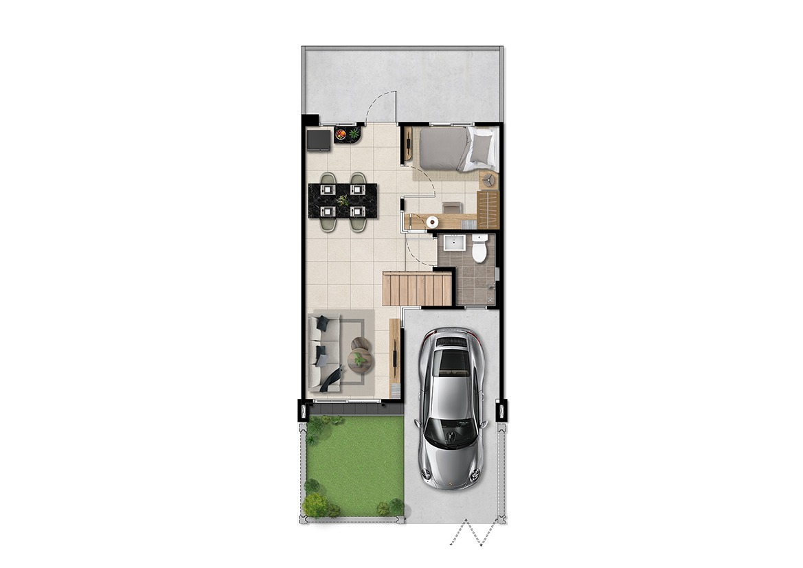 พื้นที่ใช้สอย 96 ตร.ม. 3 ห้องนอน 2 ห้องน้ำ ห้องรับแขก, ห้องรับประทานอาหาร นวัตกรรมครัวไทย และที่จอดรถ 1 คัน