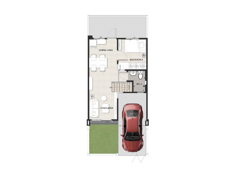 พื้นที่ใช้สอย 120 ตร.ม. 4 ห้องนอน 3 ห้องน้ำ ห้องรับแขก, ห้องรับประทานอาหาร ห้องพระ, ครัวไทย และที่จอดรถ 2 คัน