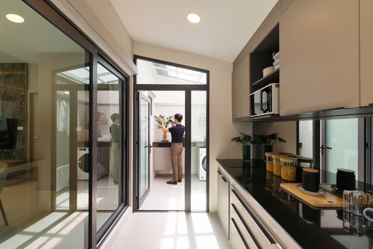 พื้นที่ใช้สอย 97 ตร.ม. 2 ห้องนอน 2 ห้องน้ำ 2 ที่จอดรถ ห้องรับแขก, ห้องรับประทานอาหาร, นวัตกรรมครัวไทย